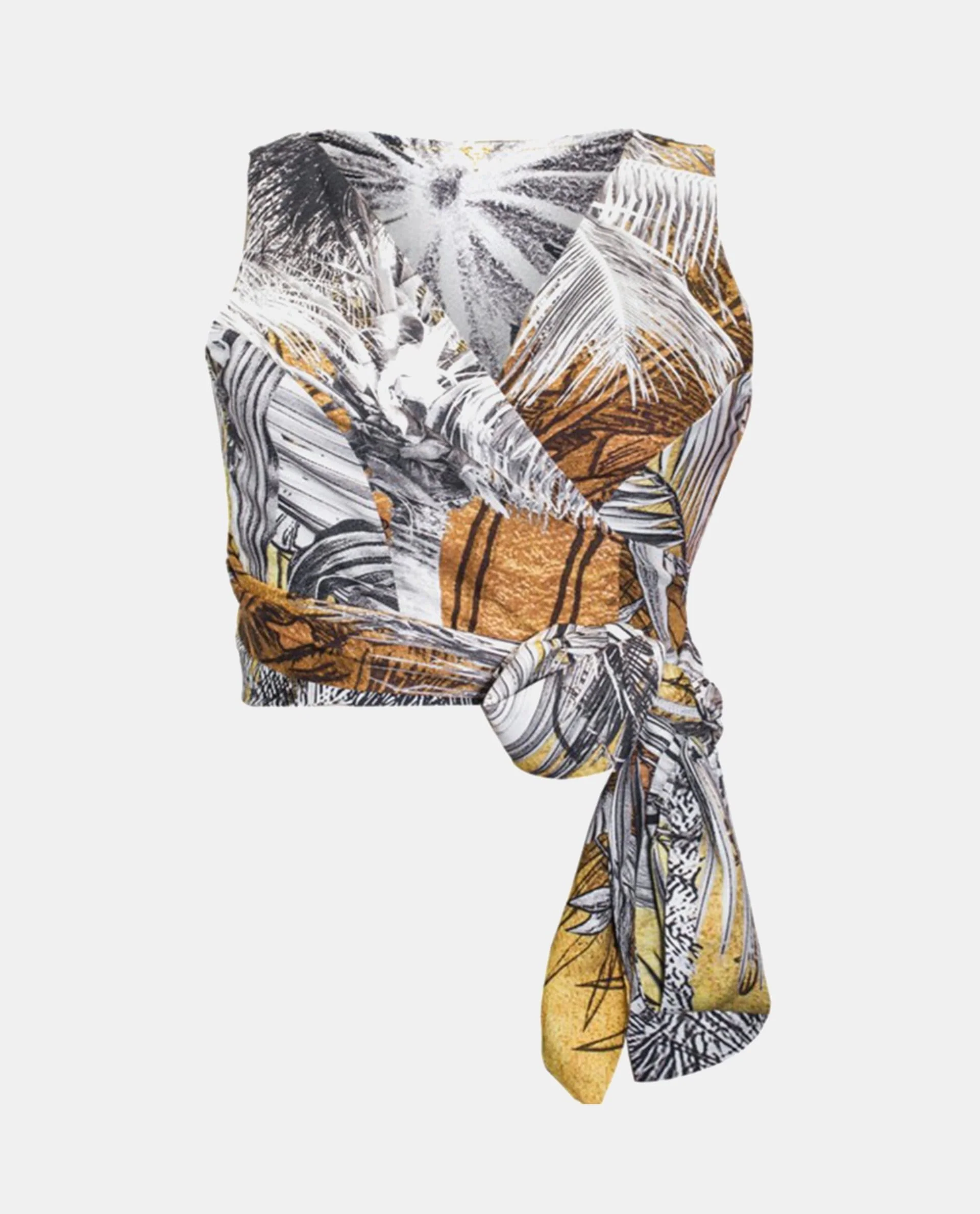 The Agua de Coco Tropical Paradise Blouse features a V neckline and pierced model with two long strips. Embrace the sunnier seasons with this cropped blouse from Agua de Coco! Pair this versatile blouse with mini shorts and make an incredible look! - V Neckline - Pierced