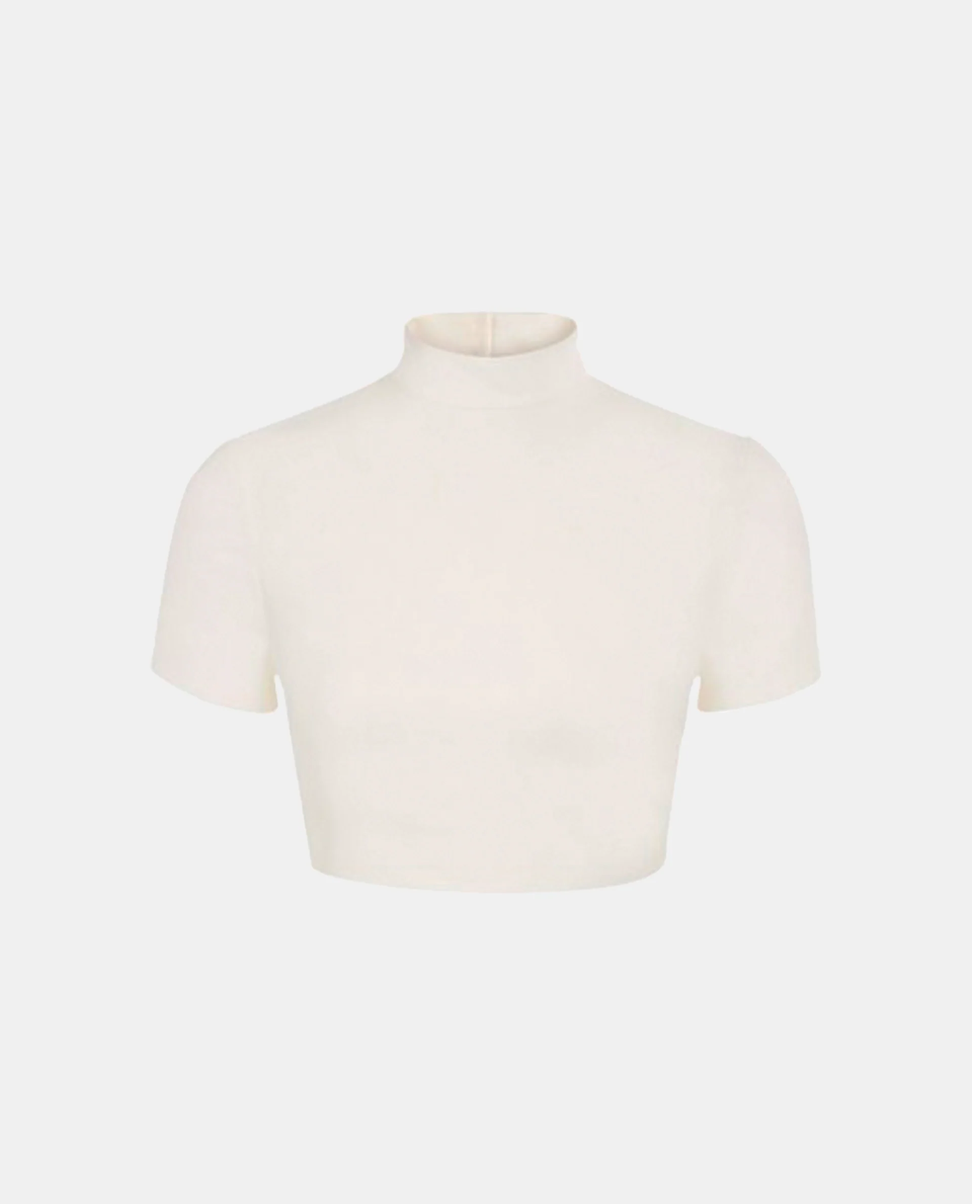 The Auria crop top in cream white features a high neck and short sleeves. Cross over back panelling gives the Auria the edge. Concealed side zip to fasten. Style with a printed maxi skirt for summer events or keep it simple with our signature high waist trousers.