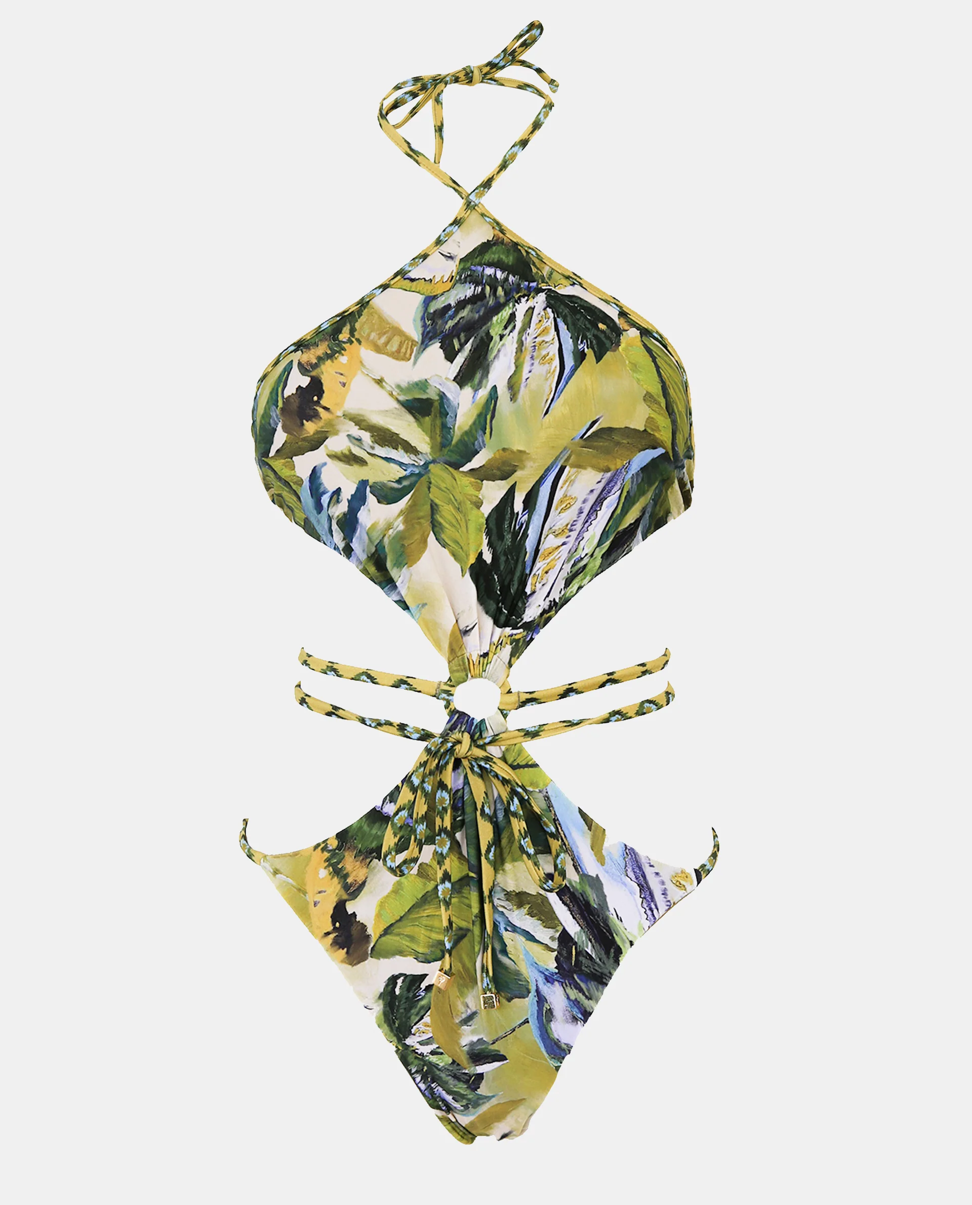 The swimsuit also has cutouts at the waist that accompany bands and that can be tied in different ways, highlighting the silhouette with elegance.