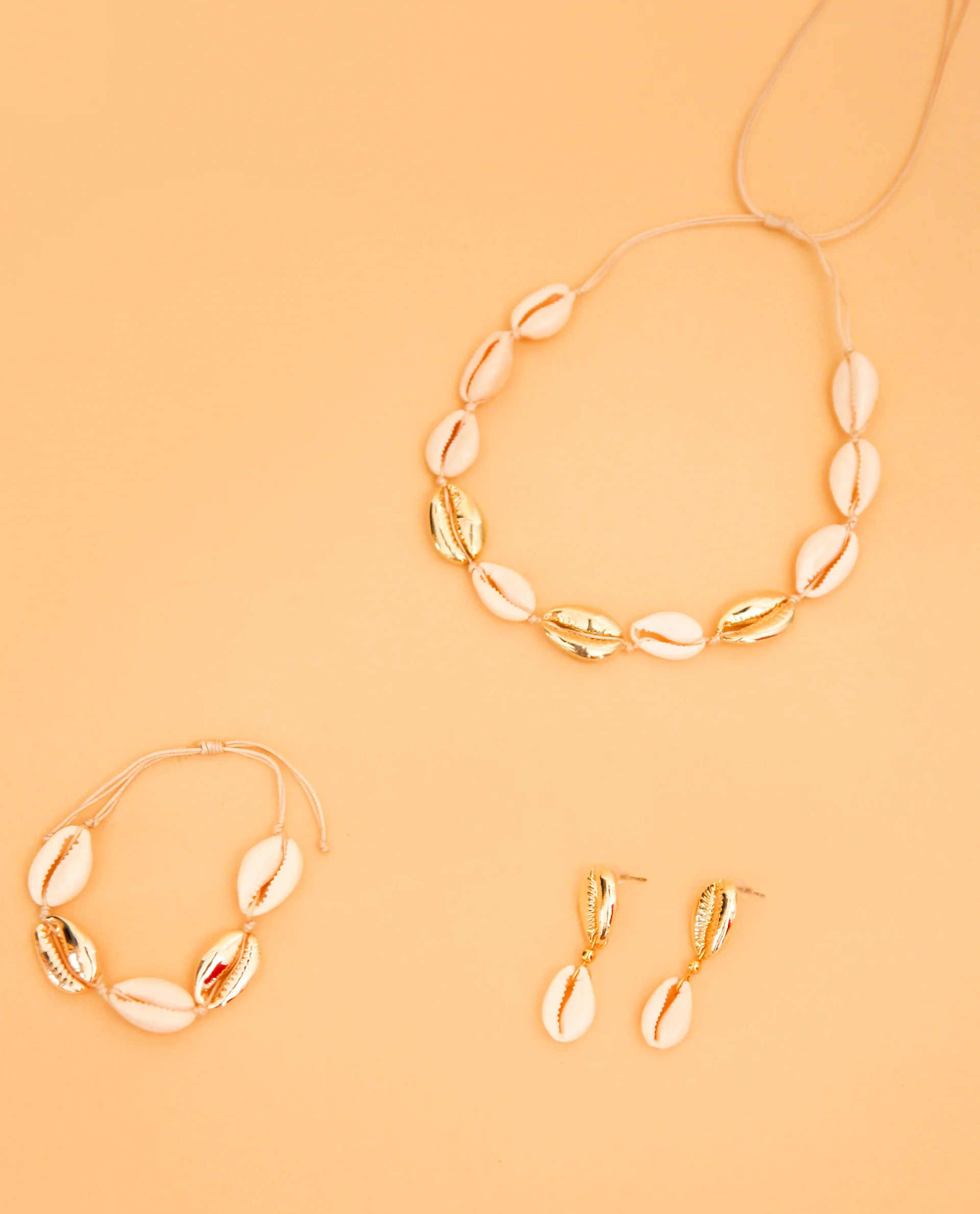 The Melie Love My Seashel Choker is an adjustable choker with white and golden shells. The sliding cord allows you to easily adjust the length, so you can wear it as a choker or layer up with other bohemian pieces. Perfect for a relaxed look. Try to wear it as a bracelet or ankle bracelet to mix things up.