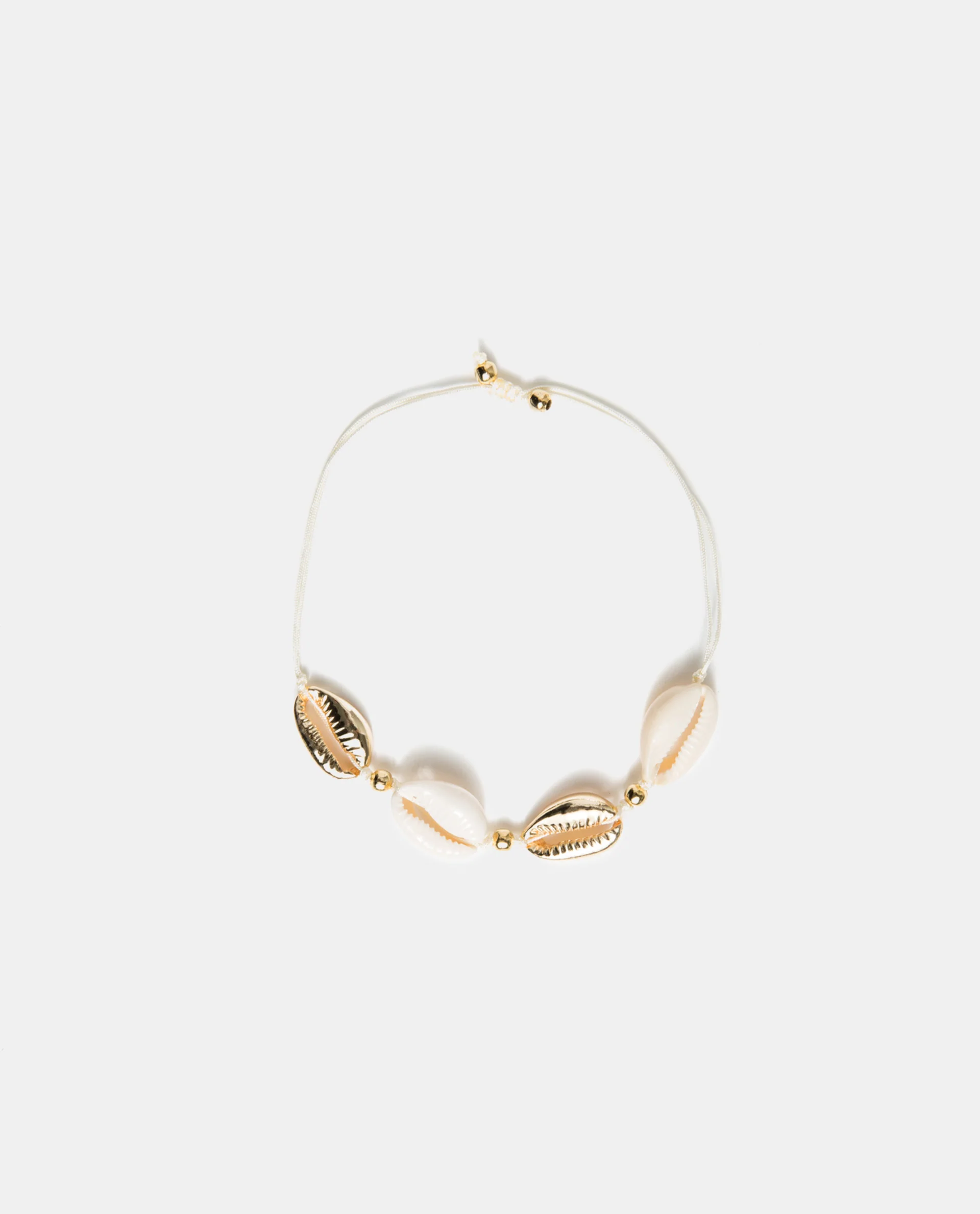 White and gold seashell bracelet to wear in wrist or foot. The sliding cord allows you to easily adjust the length.