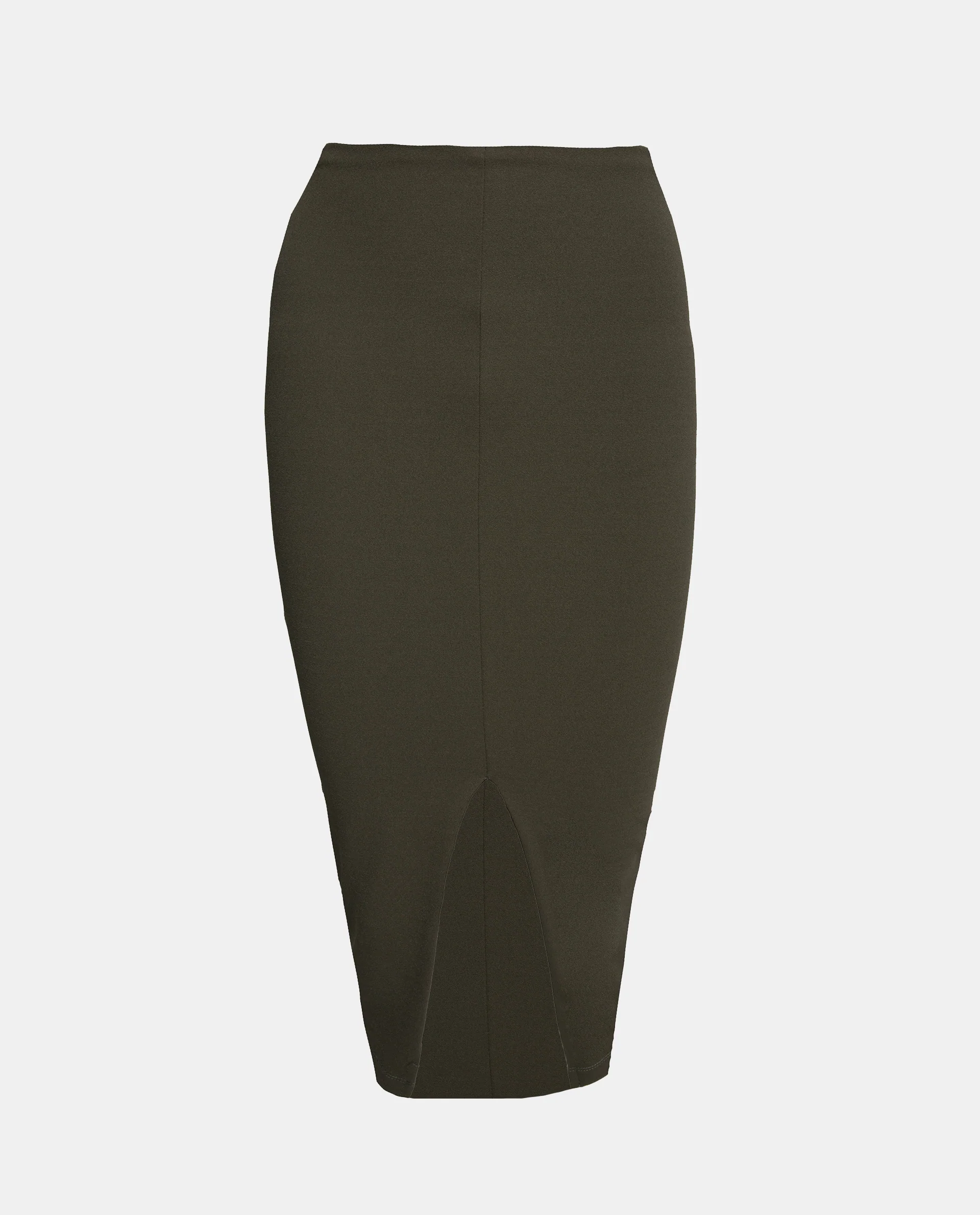 Sophisicated pencil skirt with sexy centre front split. Fully lined with centre back invisible zipper. In our crepe knit.