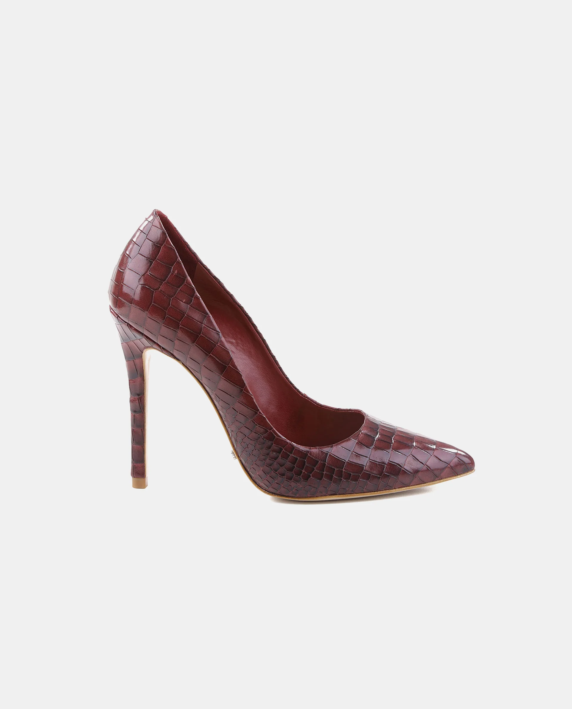 High heel pointy toe pump in embossed croco. Heel: 10cm.