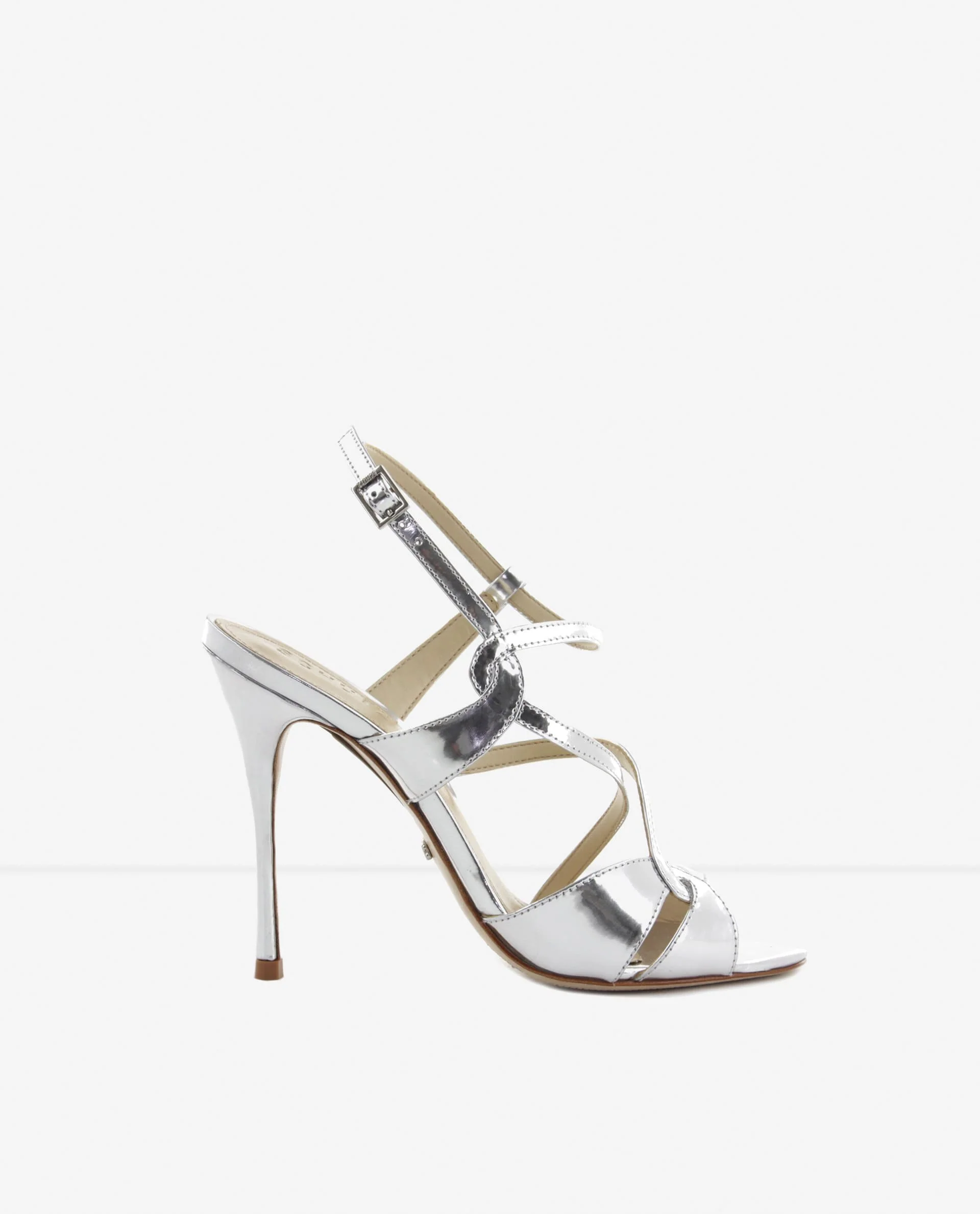 The Schutz Silver Metallic Leather Sandals are with closure on the side and have 10cm heel.
